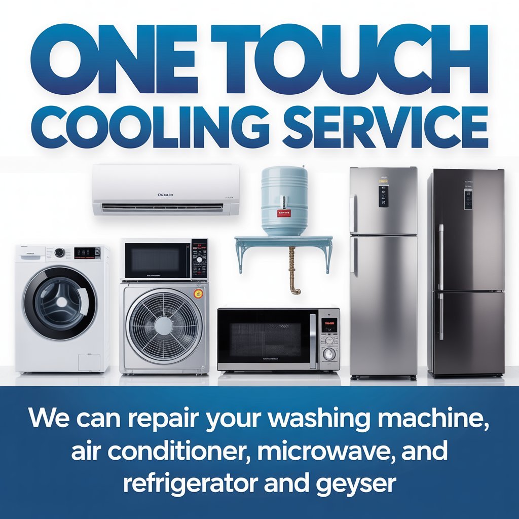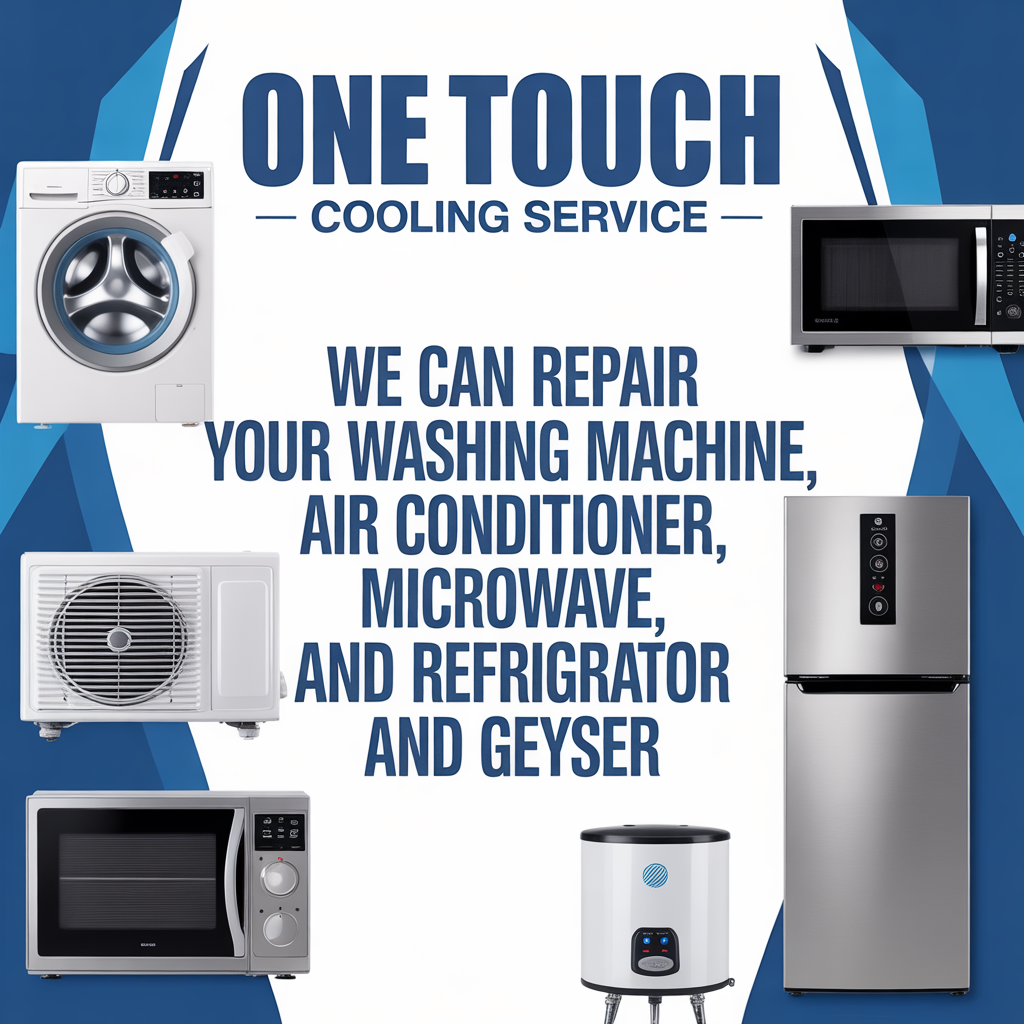 One Touch Cooling Service provides expert repair and maintenance services for all major home appliances, including air conditioners, refrigerators, washing machines, geysers, and microwaves. With years of experience and a team of trained technicians, we ensure fast diagnosis, quality repair, and complete customer satisfaction.
